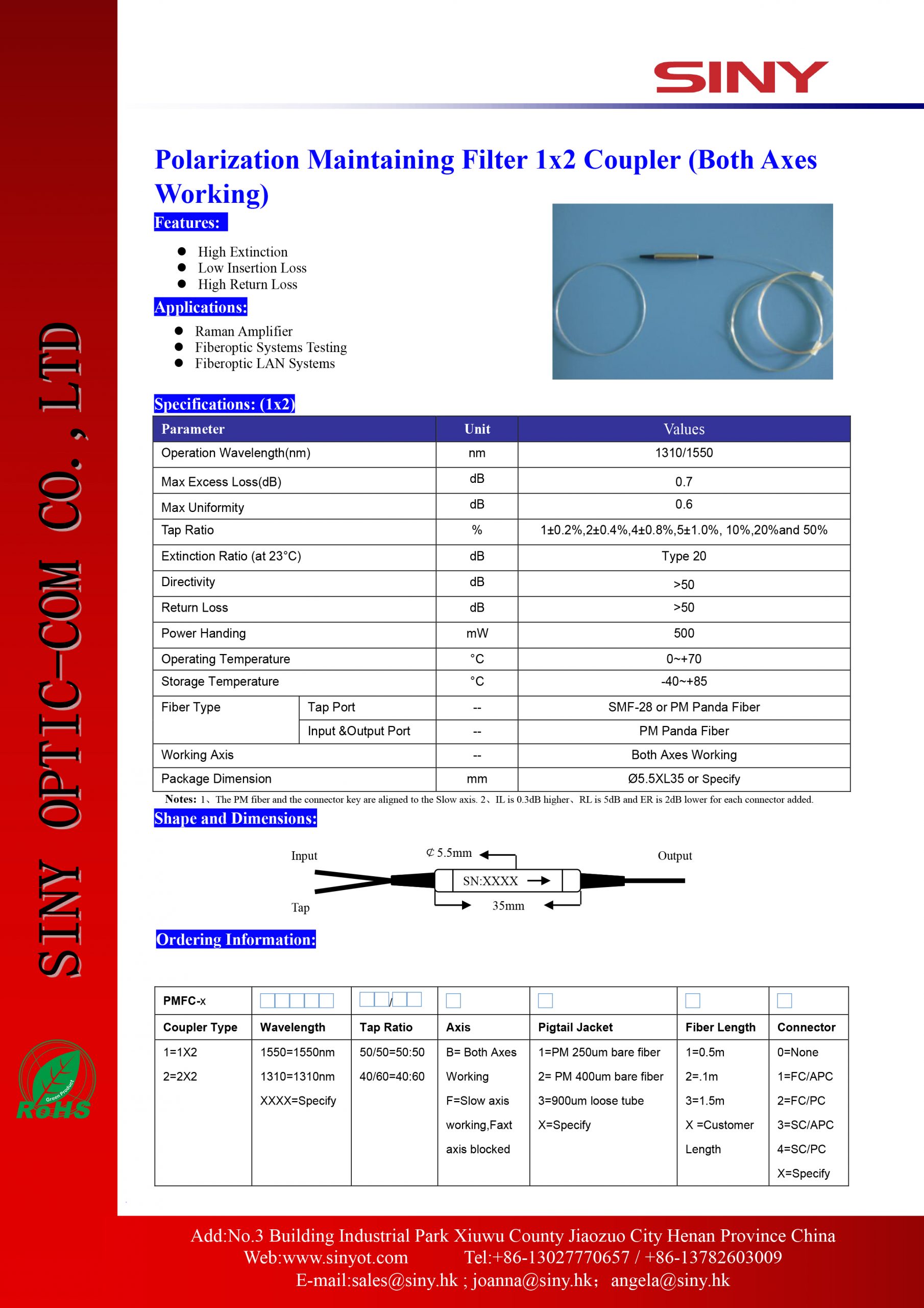 Polarization Maintaining Filter 1×2 Coupler (Both Axes Working)